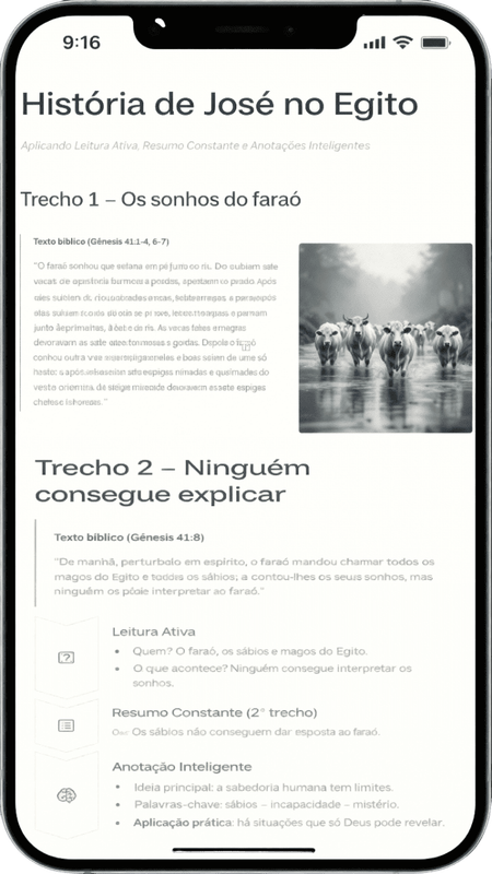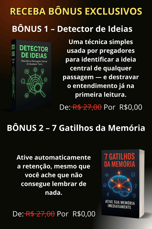 Enquanto a maioria se perde em anotações confusas, você passa a ter um protocolo simples que organiza a leitura enquanto ela acontece.