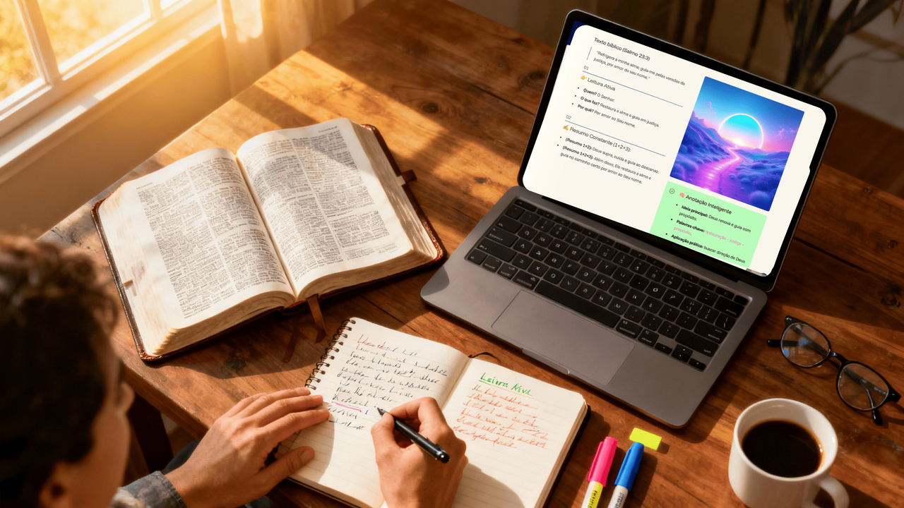Enquanto a maioria se perde em anotações confusas, você passa a ter um protocolo simples que organiza a leitura enquanto ela acontece.